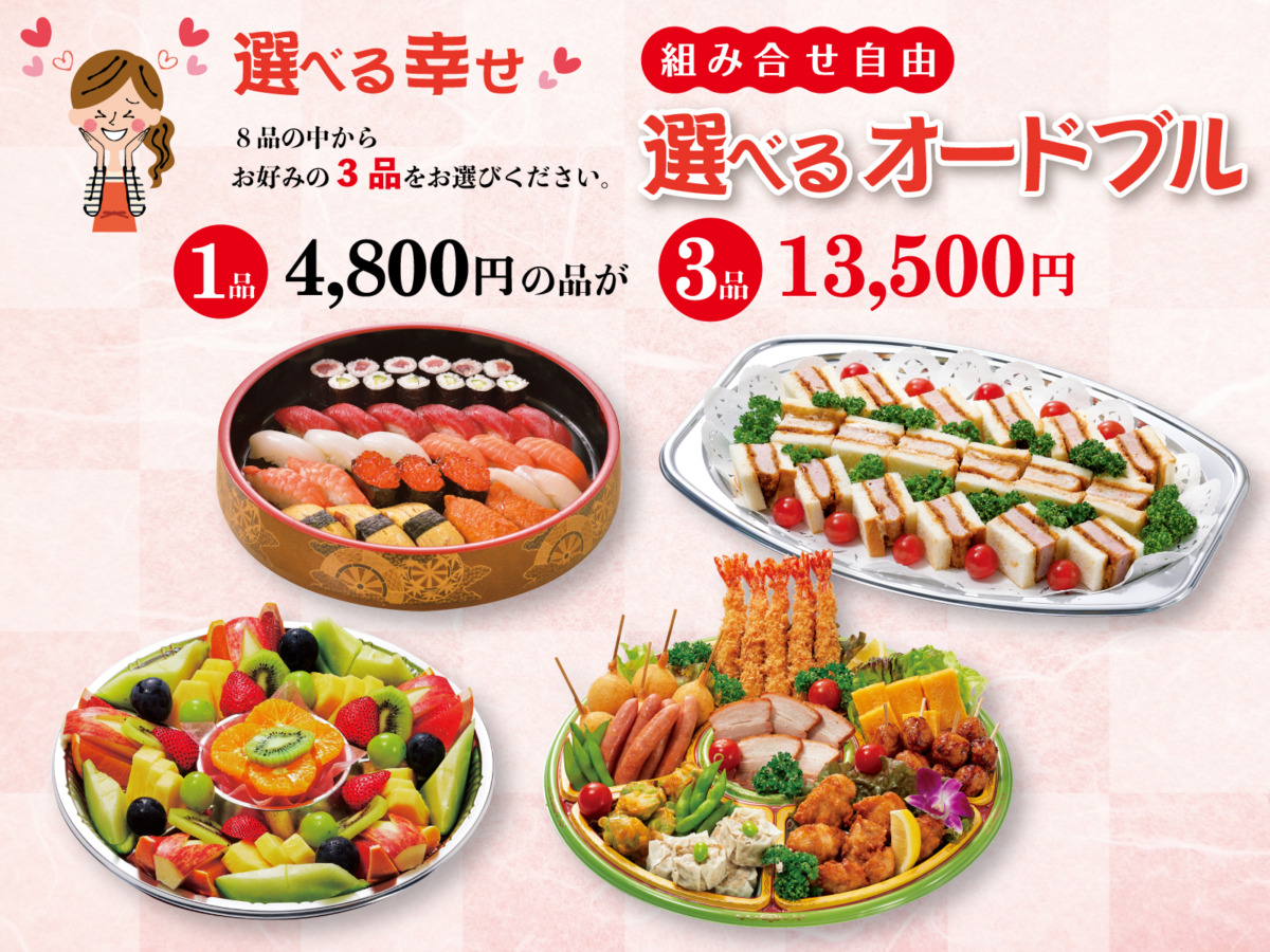 8品から選べるオードブル 3品 13,500円 13,500円(税込) 下の欄からご利用目的をお選びください。 そして8品の中から、お好みの3品をお選びください。 1品4,800円のオードブルが3品13,500円となります。 Favorite -+ Tweet 前のページに戻る
